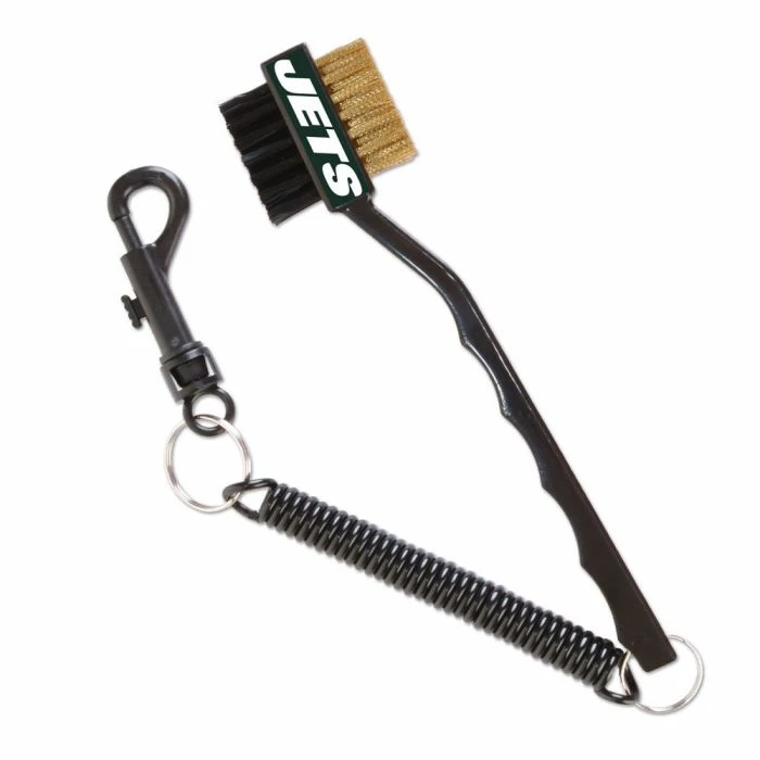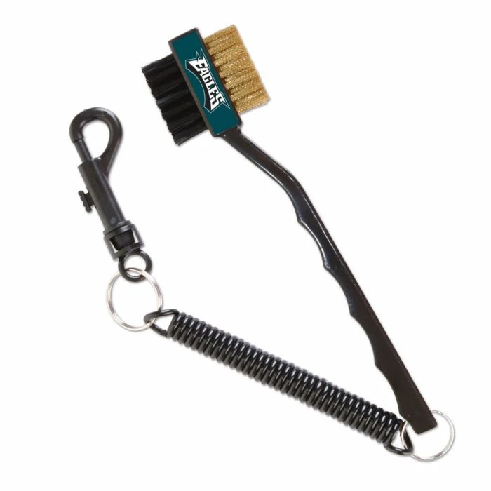 This golf brush brings some fan fun to an essential item for your golf bag! It has nylon bristles for delicate club cleaning, and brass bristles for the tough jobs like the bottom of your shoes. It has a clip and elastic cord for easy attachment and is decorated with a Mylar logo.