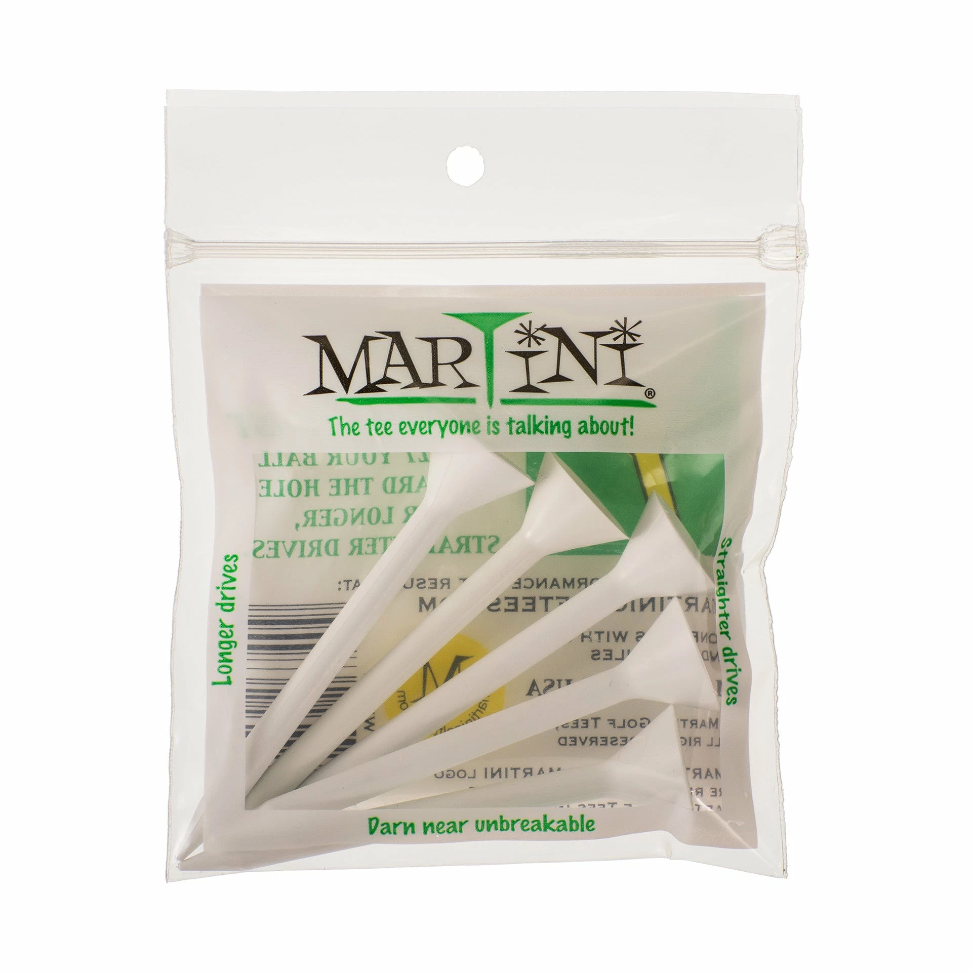 - Longer Life — No more carrying a forest of tees in your pocket when you’re on the course. Martini Tees are made from a proprietary polymer resin blend, to last a lot longer than old-fashioned wooden tees. You can get a year’s supply of tees for the same price as one martini cocktail.