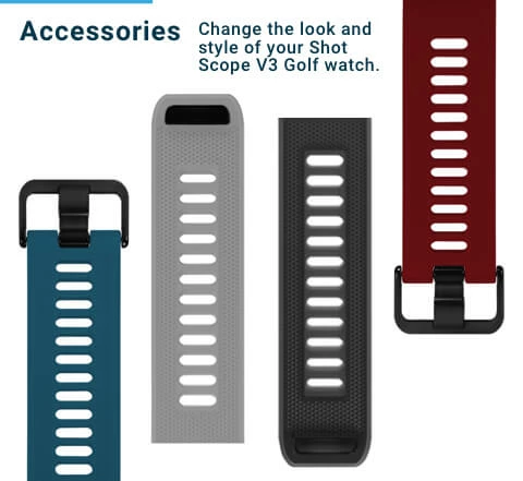 Shot Scope V3 is an advanced GPS watch with automatic shot tracking and statistics platform. F/M/B GPS distances and hazards are clearly visible on the daylight readable color screen, while the Power-Sense strap and tracking tags ensure every shot is recorded automatically while you play.