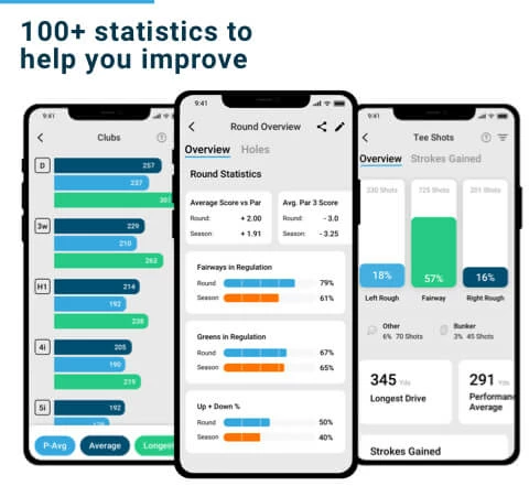 Access over 100 statistics on your Clubs, Tee Shots, Approaches, Short Game and Putting via the free mobile app or web dashboard. The mobile app provides a great summary of statistics, whereas the dashboard allows more in-depth analysis.