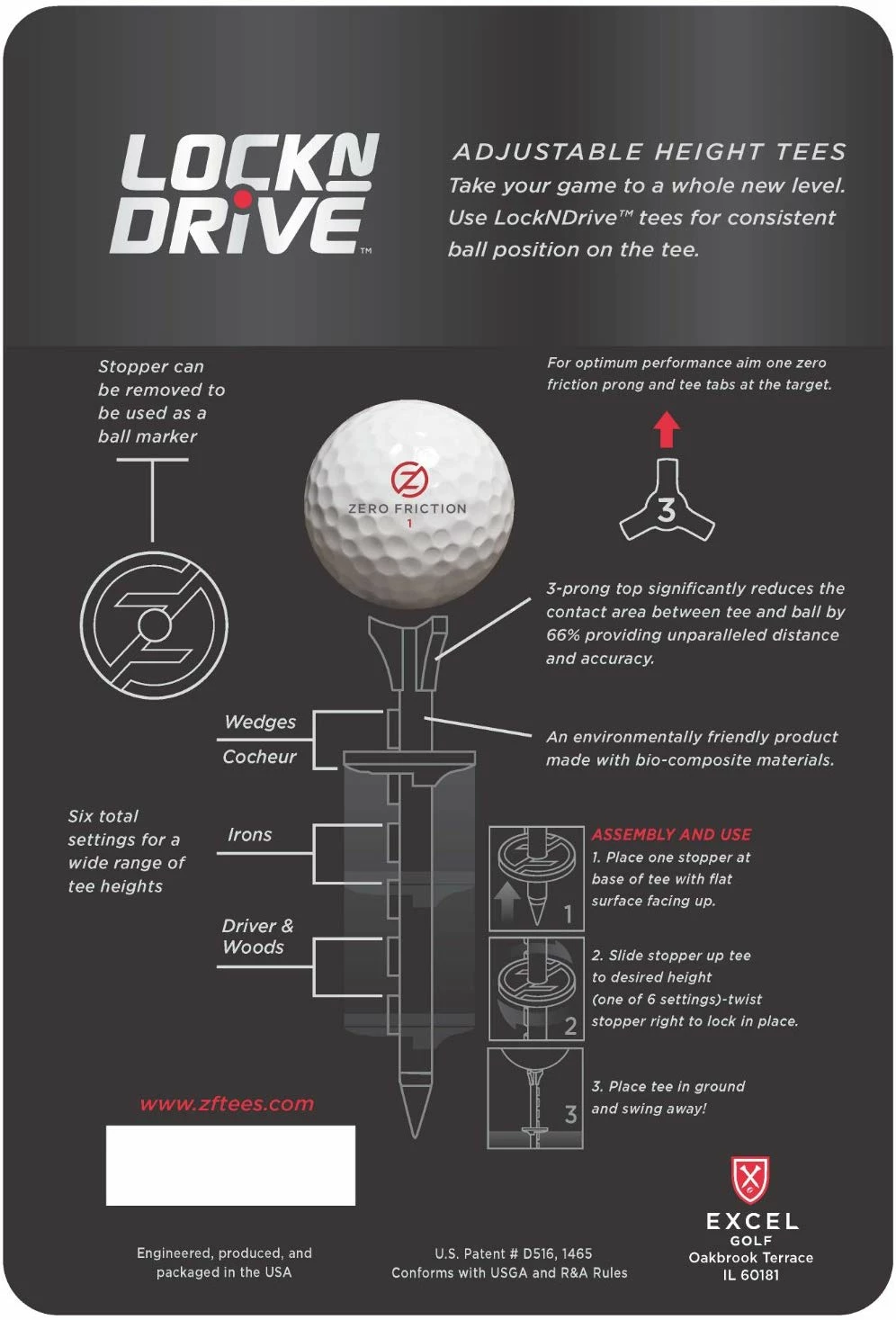 - The ZF Lock n Drive is a unique tee system that allows you to place your tee at the same height consistently with a bonus stopper that is also a ball marker.